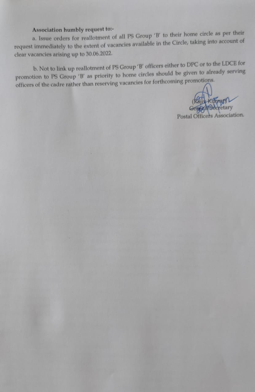 Letter was handed over to Respected Secretary (Posts) on 28. 04.2022 during his three days visit of Bihar. Secretary Sir has taken a note of this long pending issues and assured us to look forward for it's early redressal.